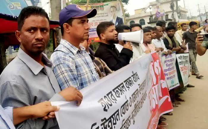 জগন্নাথপুরে নদী ভাঙন কবলিত স্থানে বেড়িবাঁধ