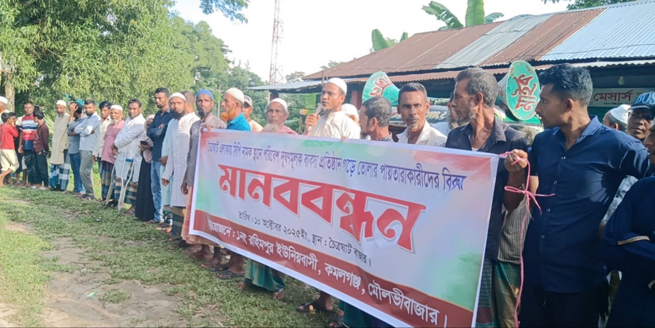 কমলগঞ্জে পুনরায় সিপি চালুর ষড়'য'ন্ত্রের প্রতি'বা'দে মান'বব'ন্ধন