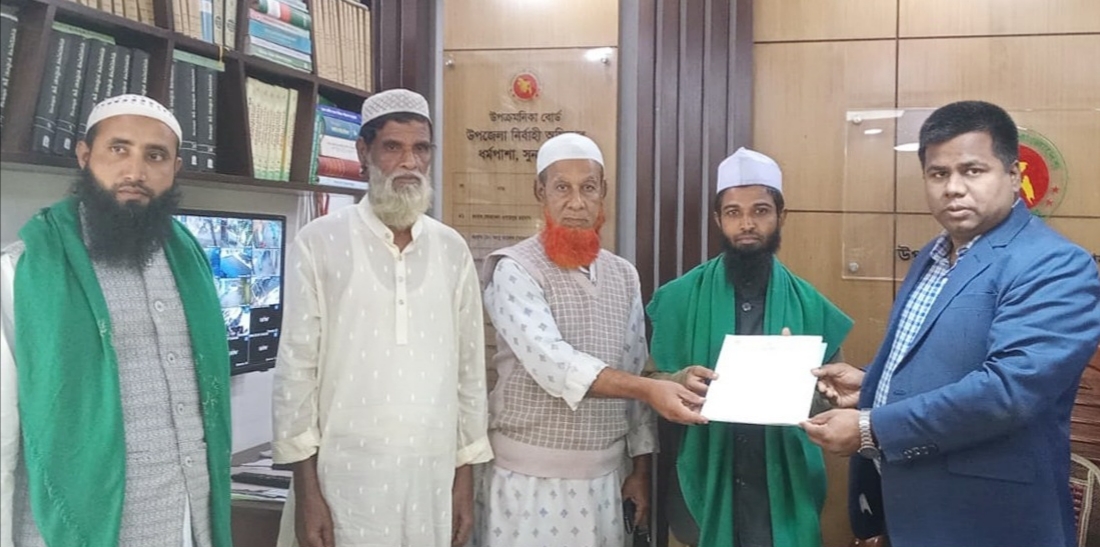 সোমবার (২৯ ডিসেম্বর) বিকেল সাড়ে ৪টায় ধর্মপাশা উপজেলা নির্বাহী কর্মকর্তা ও সহকারী রিটার্নিং কর্মকর্তা জনি রায়ের কাছে মনোনয়ন পত্র দাখিল করেন তিনি। এসময় উপস্থিত ছিলেন মধ্যনগর উপজেলা হেফাজতে ইসলাম এর সভাপতি আলহাজ্ব মাওলানা আব্দুস সালাম, নেজামে ইসলাম পার্টির কেন্দ্রীয় নির্বাহী পরিষদের সদস্য ও সুনামগঞ্জ জেলার সেক্রেটারি মাওলানা আলী-হুসাইন খান রাগবী, ধর্মপাশা উপজেলার সভাপতি মাওলানা রিয়াজুদ্দিন নূরী, মাও আমিরুল ইসলাম, মাও মাহবুবুর রহমান, হাঃ মাও মাছরুর রহমান, হাঃ আব্দুল্লাহ, আলাল মিয়া, আতিক ইকবাল, মো. তফাজ্জল হোসেন, সিদ্দিকুর, রাজু আহমদ, মাও আশরাফ আলী প্রমুখ। বিজ্ঞপ্তি