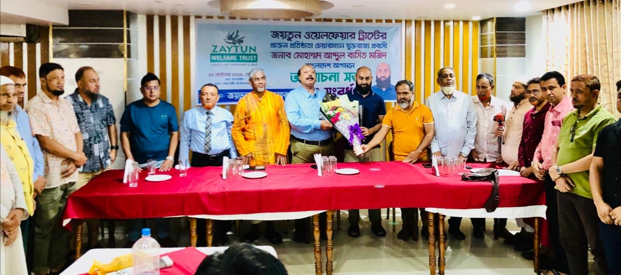 জয়তুন ওয়েলফেয়ার ট্রাস্টের প্রতিষ্ঠাতা চেয়ারম্যান মোহাম্মদ আব্দুল বাসিত মজিদকে সং'ব'র্ধনা