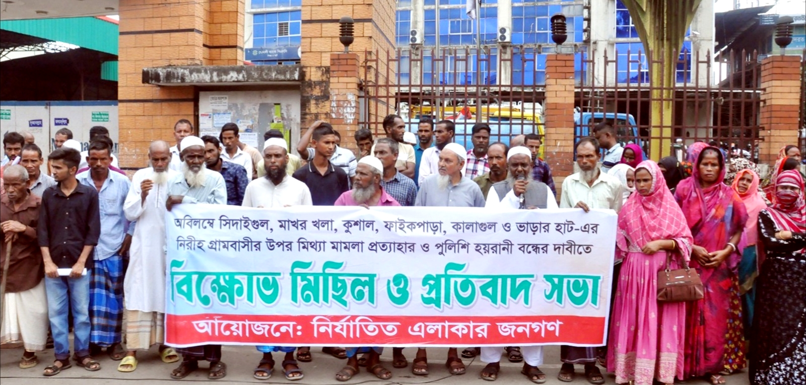মাদ'ককার'বারীর মিথ্যা মামলায় এলাকাবাসীকে হয়'রানীর প্রতিবাদে বি'ক্ষো'ভ সমাবেশ