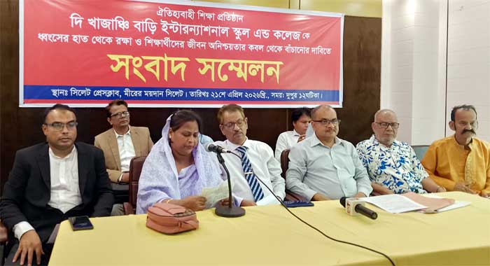 সিলেট নগরীর দি খাজাঞ্চি বাড়ি ইন্টারন্যাশনাল স্কুল এন্ড কলেজে প্রশাসনিক স্বেচ্ছাচারিতা, গঠনতন্ত্র লঙ্ঘন, শিক্ষক সংকট ও শিক্ষা কার্যক্রম ভেঙে পড়ার অভিযোগ তুলে সংবাদ সম্মেলন করেছেন সচেতন অভিভাবক ও শিক্ষানুরাগীরা। তারা অবিলম্বে ৭ দফা দাবি বাস্তবায়নের আহ্বান জানিয়েছেন।