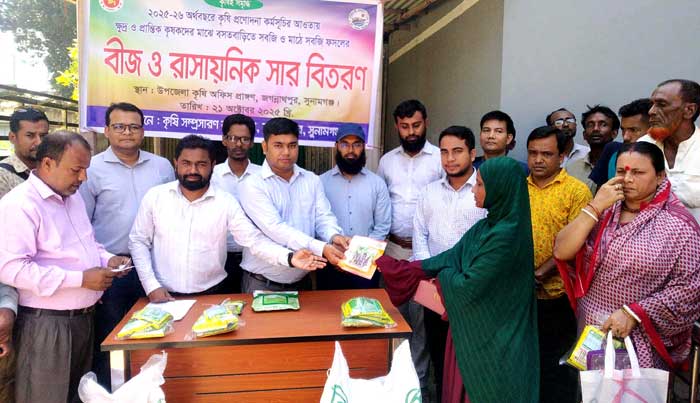জগন্নাথপুরে প্রান্তিক কৃষকদের মাঝে সবজি বীজ ও সার বিতরণ